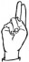 На ћирилици написано АНАСТАСИЈА РАДУКИН састоји се из 17 слова [?]. Исписано ћириличном једноручном азбуком за глувонеме: